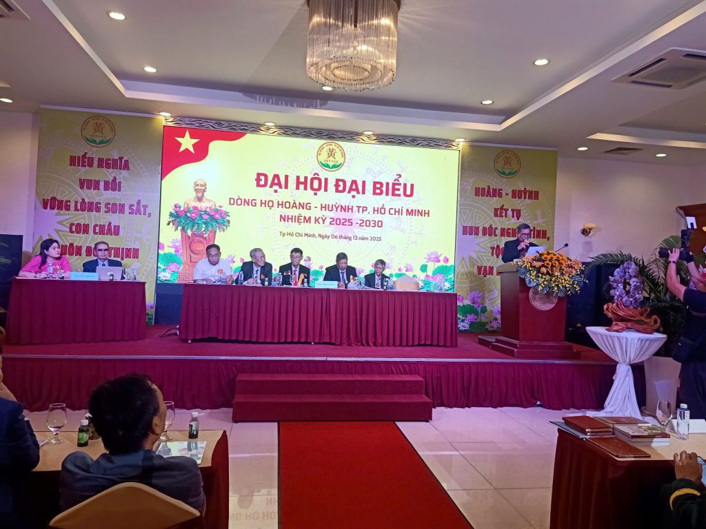 Ngày 6/12, tại TPHCM đã diễn ra Đại hội Đại biểu Dòng họ Hoàng – Huỳnh TPHCM nhiệm kỳ 2025–2030. Đây là một đại hội mang tầm vóc, định hình chiến lược kết nối cộng đồng trong thập niên mới. Không chỉ là dịp tổng kết chặng đường 5 năm, Đại hội năm nay thể hiện tinh thần “Kết tự – Hun đúc nghĩa tình – Tộc họ vạn đại vinh” – thông điệp riêng có của dòng tộc Hoàng – Huỳnh.